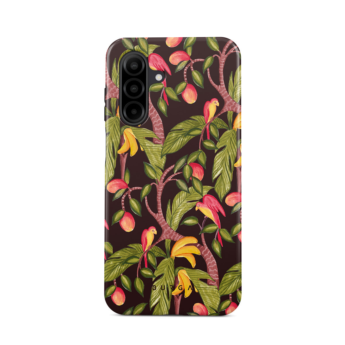 Questo design include: mango, foglie verde scuro, motivo ispirato alla giungla