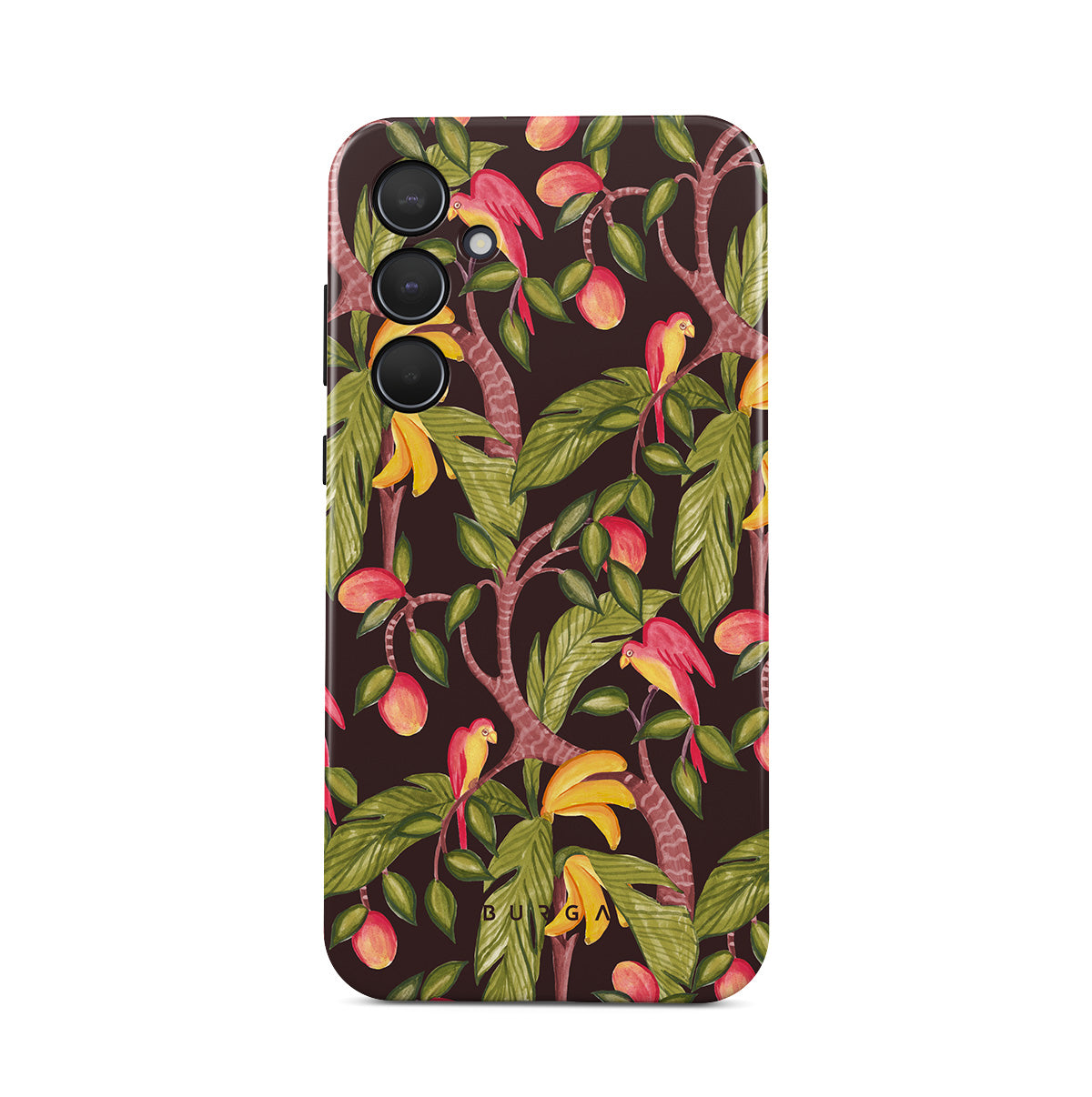 Questo design include: mango, foglie verde scuro, motivo ispirato alla giungla