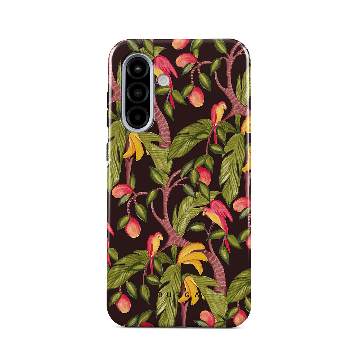 Questo design include: mango, foglie verde scuro, motivo ispirato alla giungla