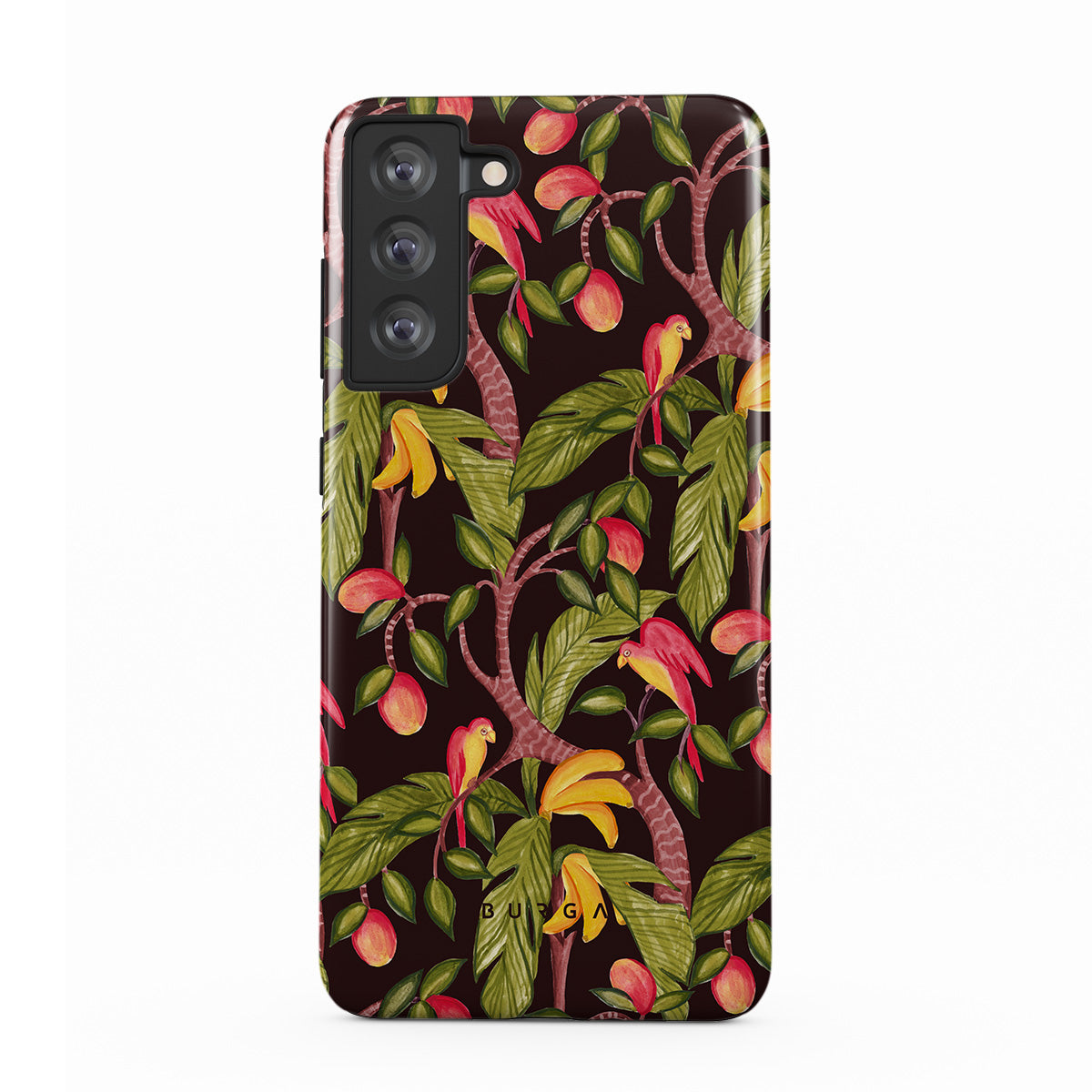 Questo design include: mango, foglie verde scuro, motivo ispirato alla giungla