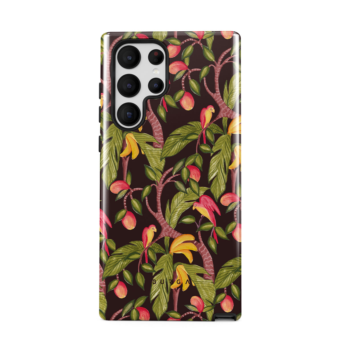 Questo design include: mango, foglie verde scuro, motivo ispirato alla giungla