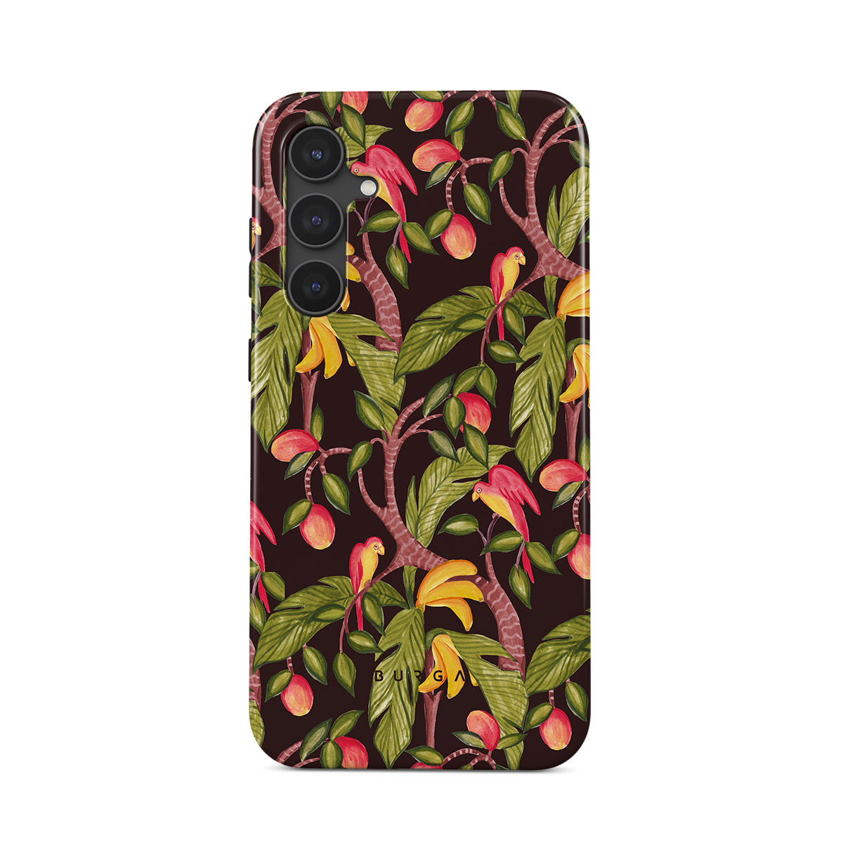 Questo design include: mango, foglie verde scuro, motivo ispirato alla giungla
