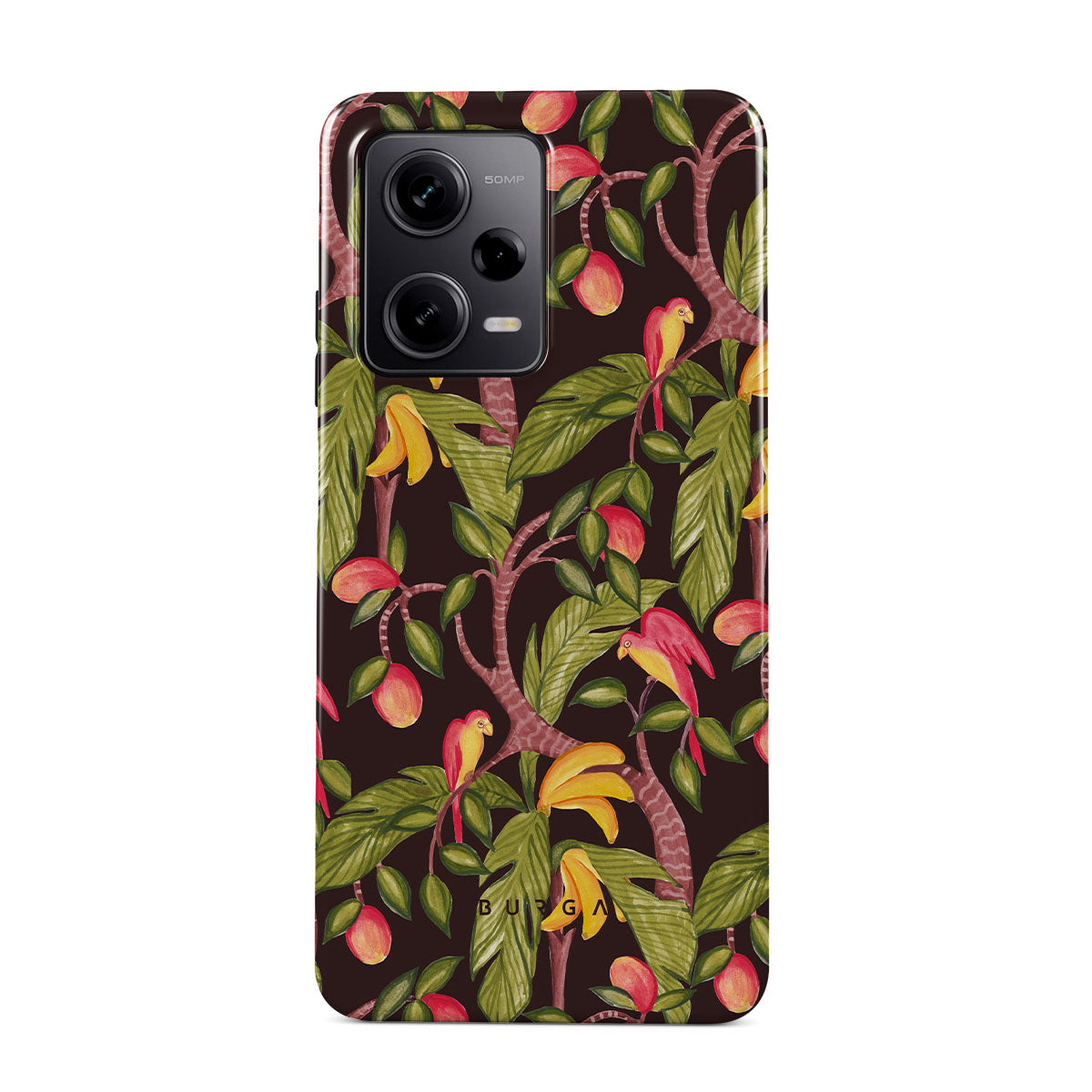 Questo design include: mango, foglie verde scuro, motivo ispirato alla giungla