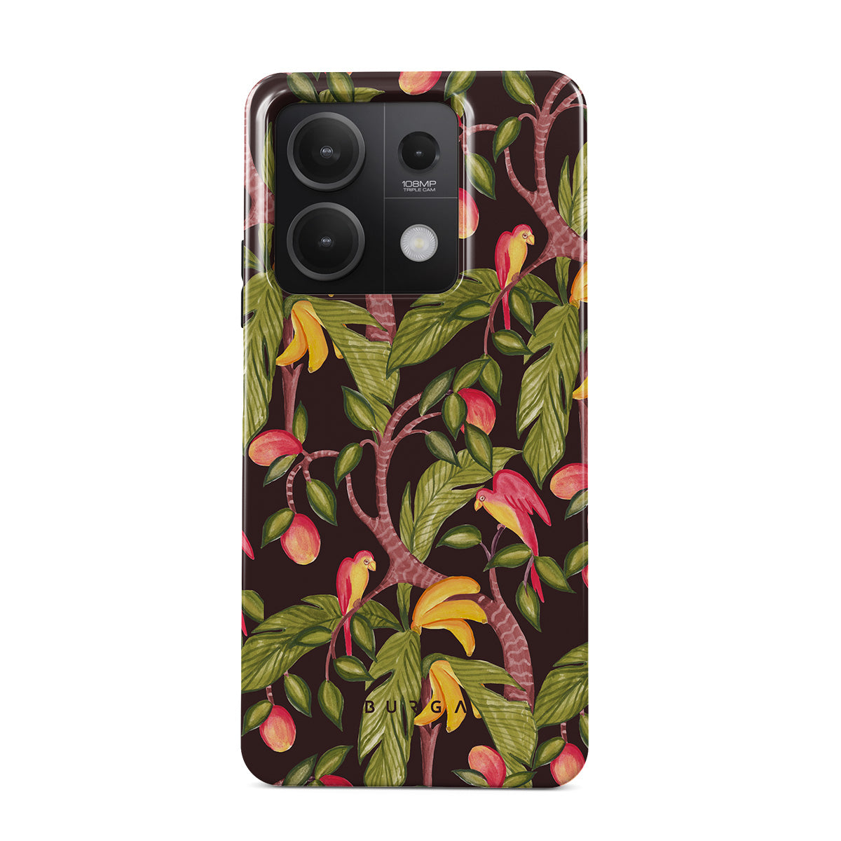 Questo design include: mango, foglie verde scuro, motivo ispirato alla giungla