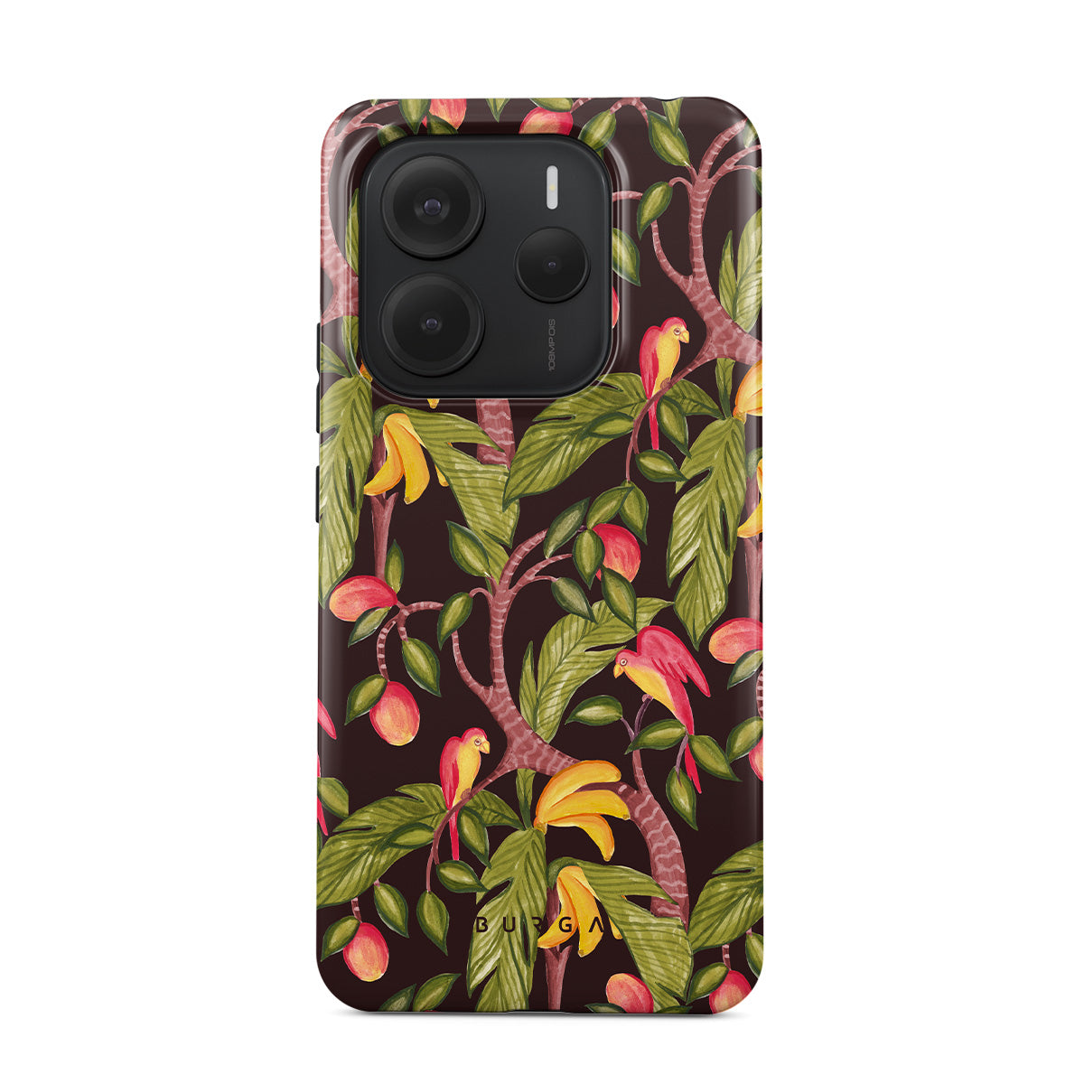 Questo design include: mango, foglie verde scuro, motivo ispirato alla giungla