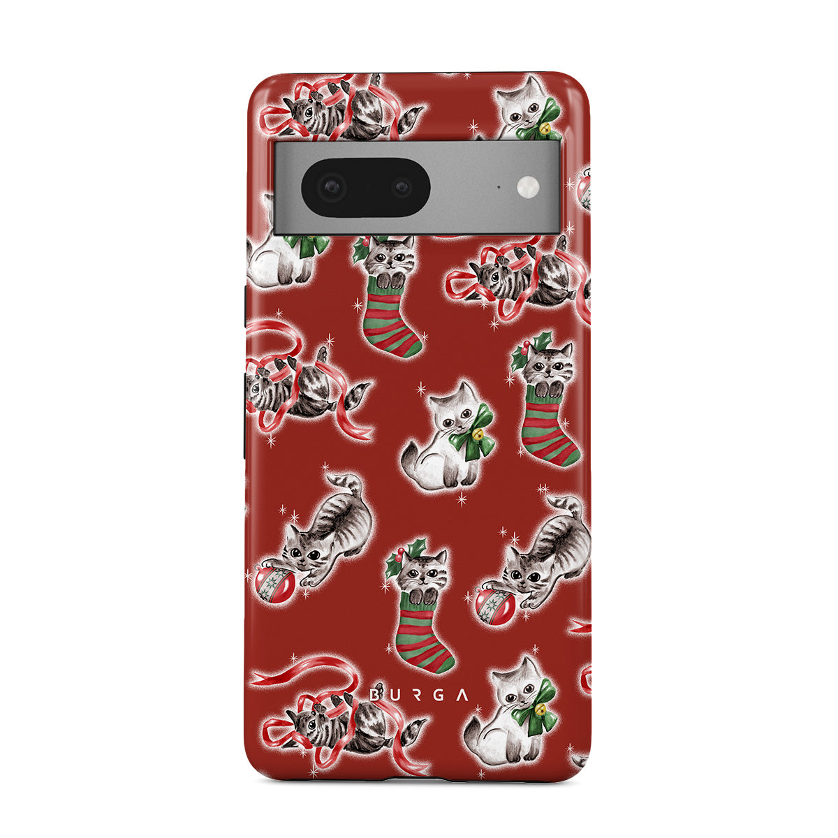 Questo design include: gatti, calze natalizie, gattini, motivo rosso e verde, gatti giocosi, decorazioni natalizie