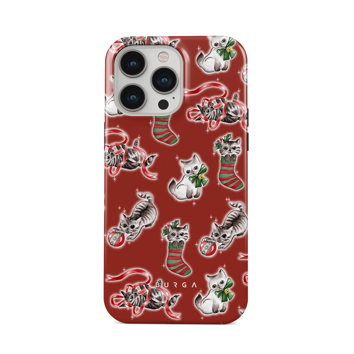Questo design include: gatti, calze natalizie, gattini, motivo rosso e verde, gatti giocosi, decorazioni natalizie