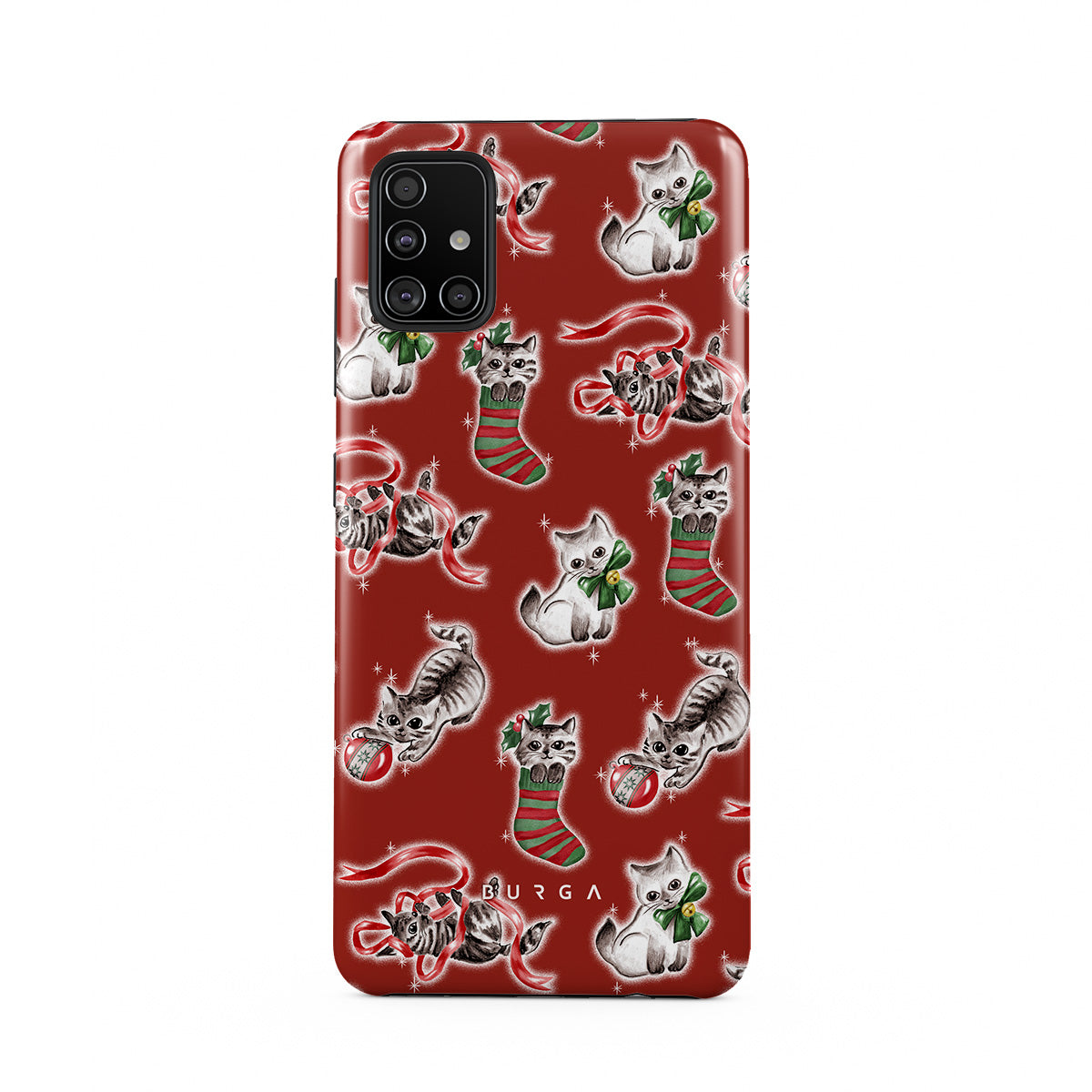 Questo design include: gatti, calze natalizie, gattini, motivo rosso e verde, gatti giocosi, decorazioni natalizie