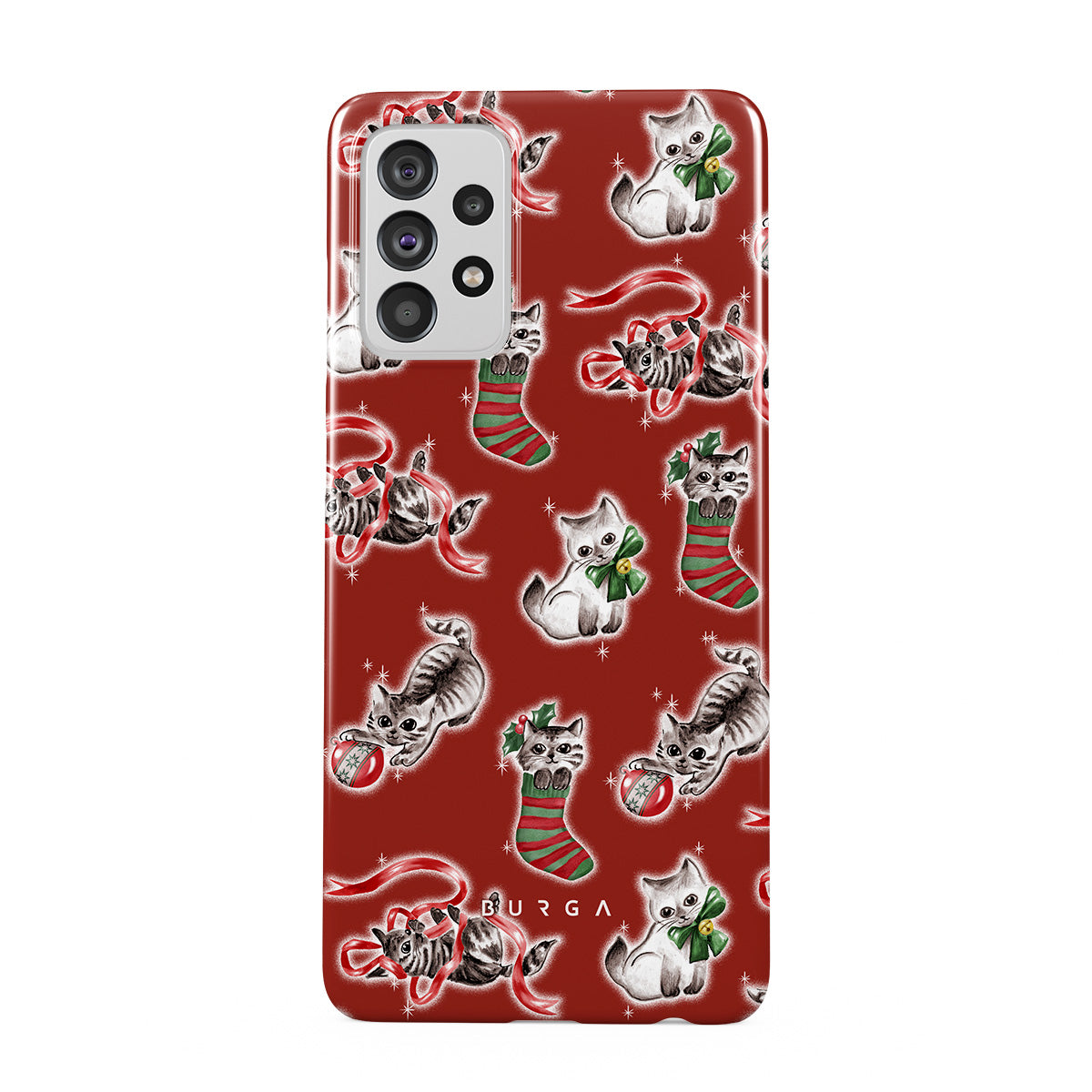 Questo design include: gatti, calze natalizie, gattini, motivo rosso e verde, gatti giocosi, decorazioni natalizie