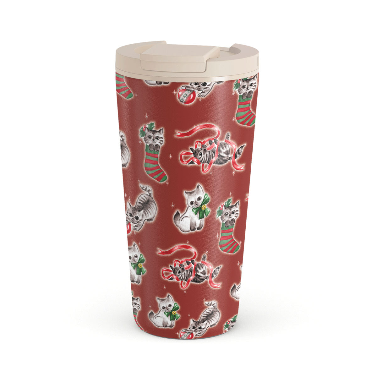Questo design include: gatti, calze natalizie, gattini, motivo rosso e verde, gatti giocosi, decorazioni natalizie