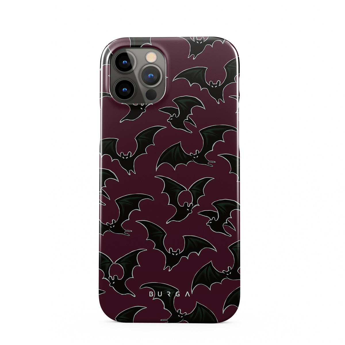 Questo design include: tema Halloween, pipistrelli, sfondo bordeaux