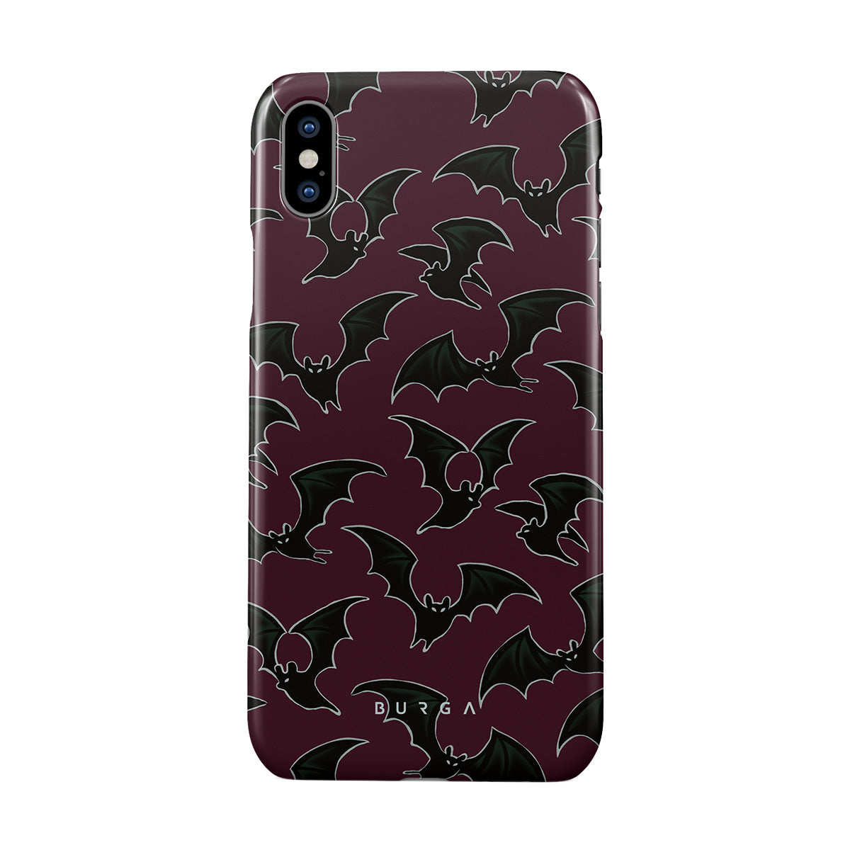 Questo design include: tema Halloween, pipistrelli, sfondo bordeaux