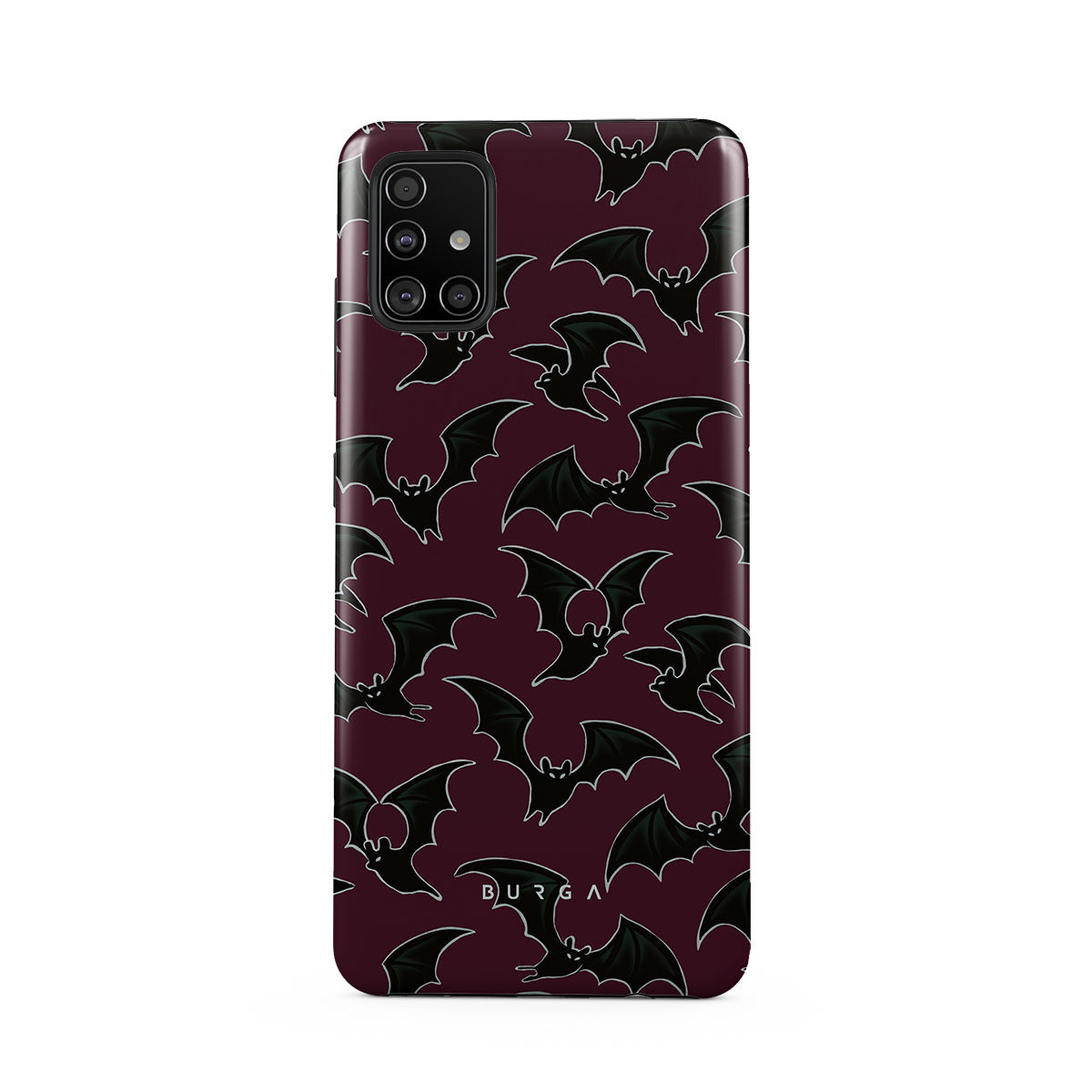 Questo design include: tema Halloween, pipistrelli, sfondo bordeaux