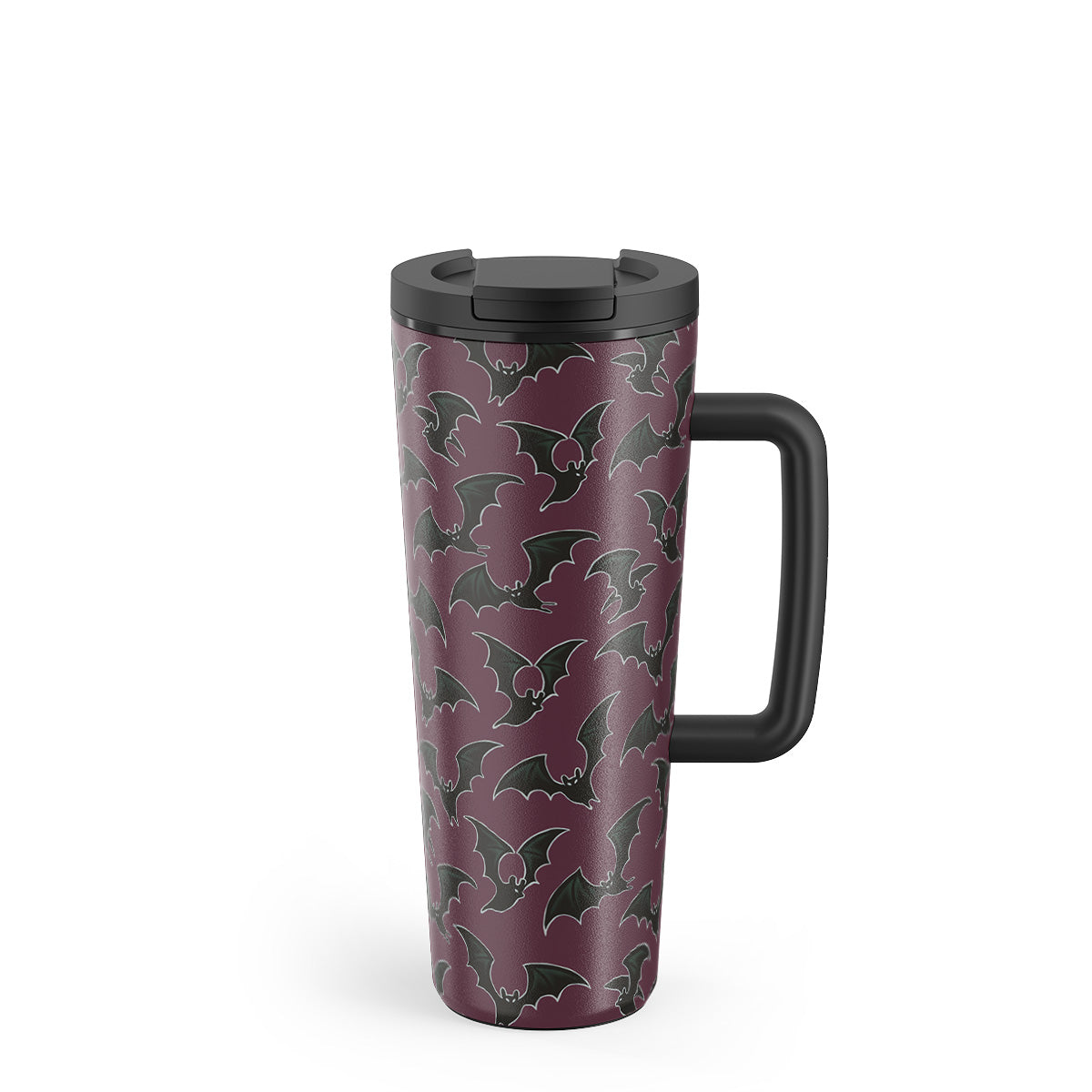 Questo design include: tema Halloween, pipistrelli, sfondo bordeaux