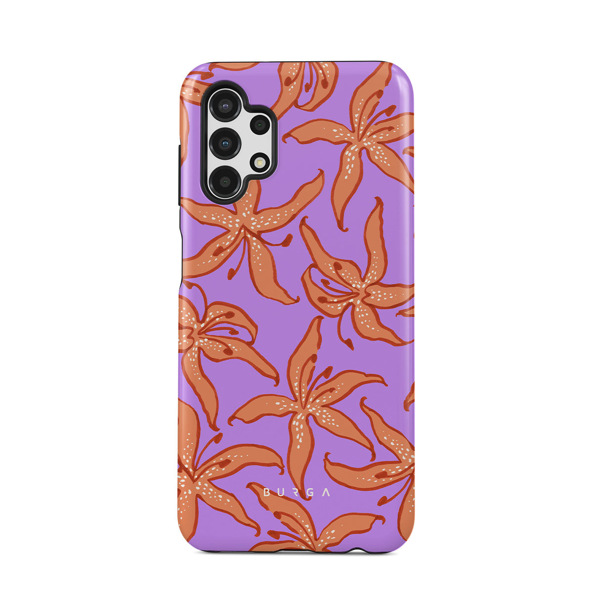 Questo design include: gigli arancioni, sfondo viola.