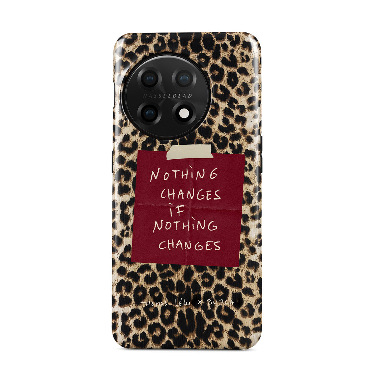 Questo design include: testo in corsivo, citazione, post-it rosso, stampa animalier