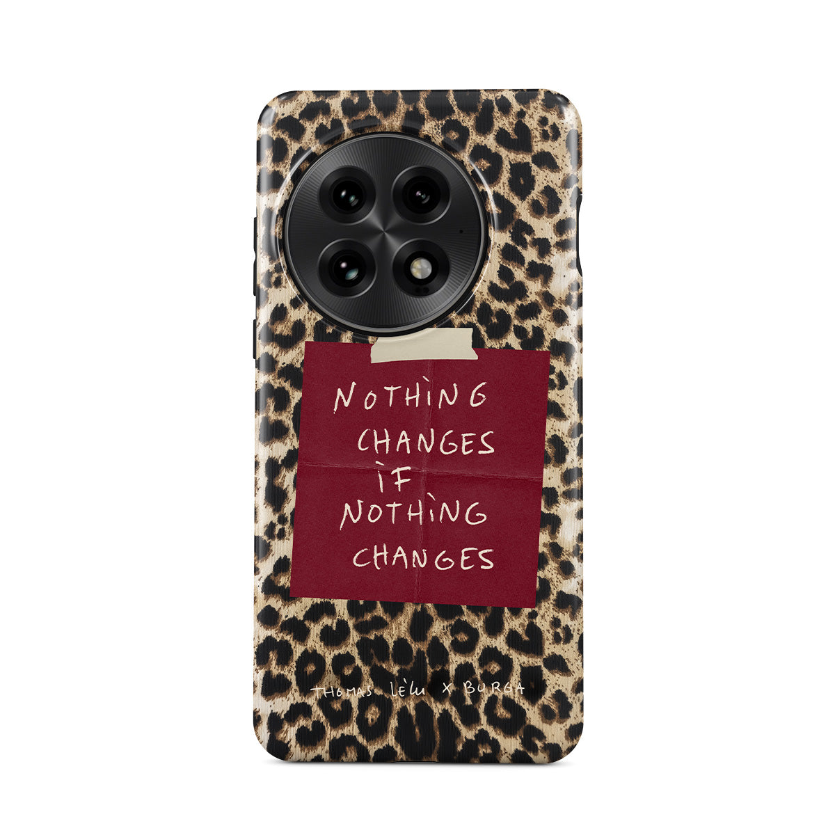 Questo design include: testo in corsivo, citazione, post-it rosso, stampa animalier
