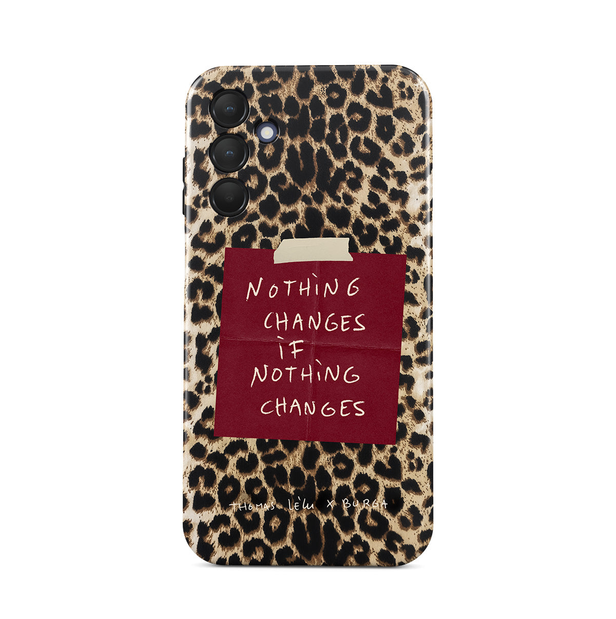 Questo design include: testo in corsivo, citazione, post-it rosso, stampa animalier