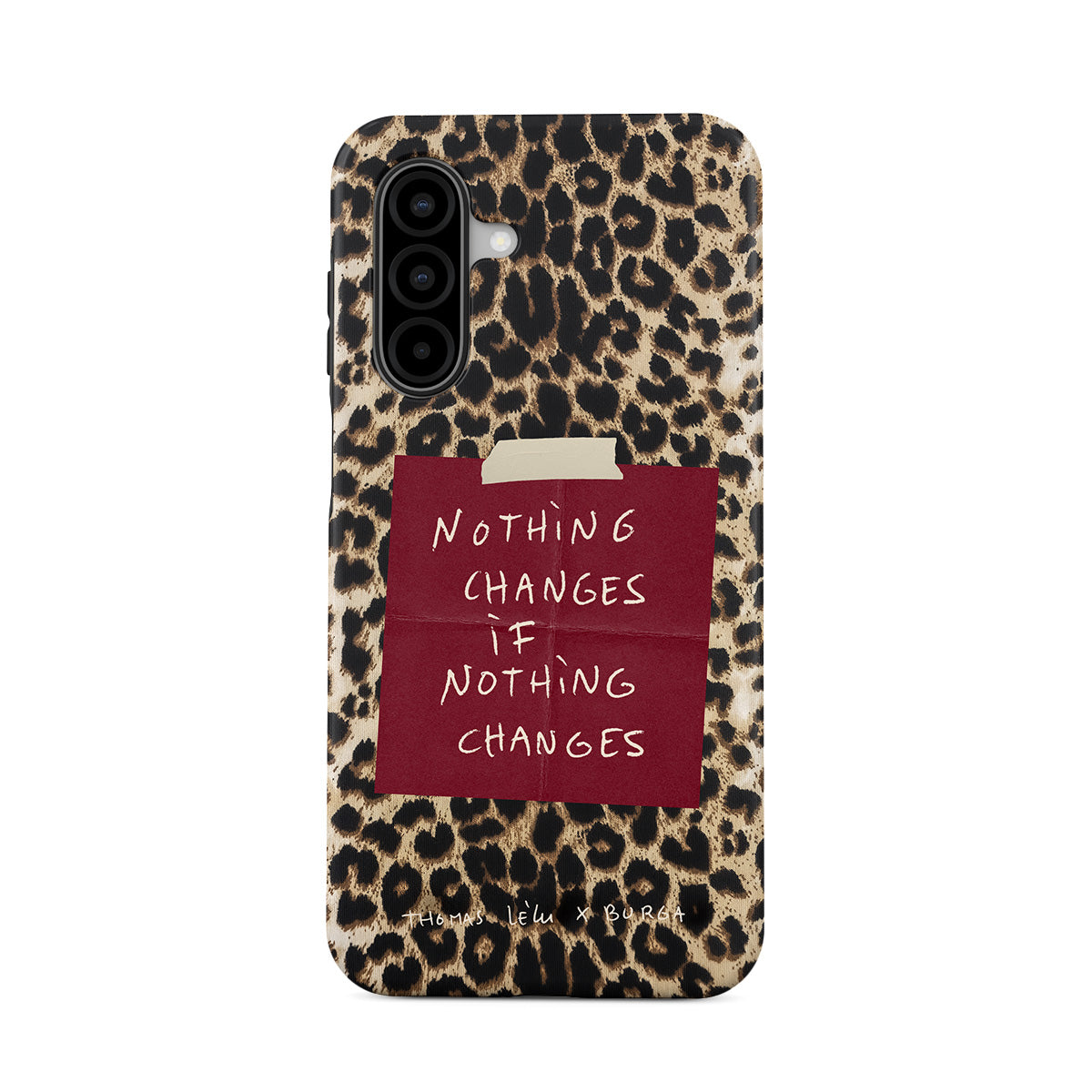 Questo design include: testo in corsivo, citazione, post-it rosso, stampa animalier