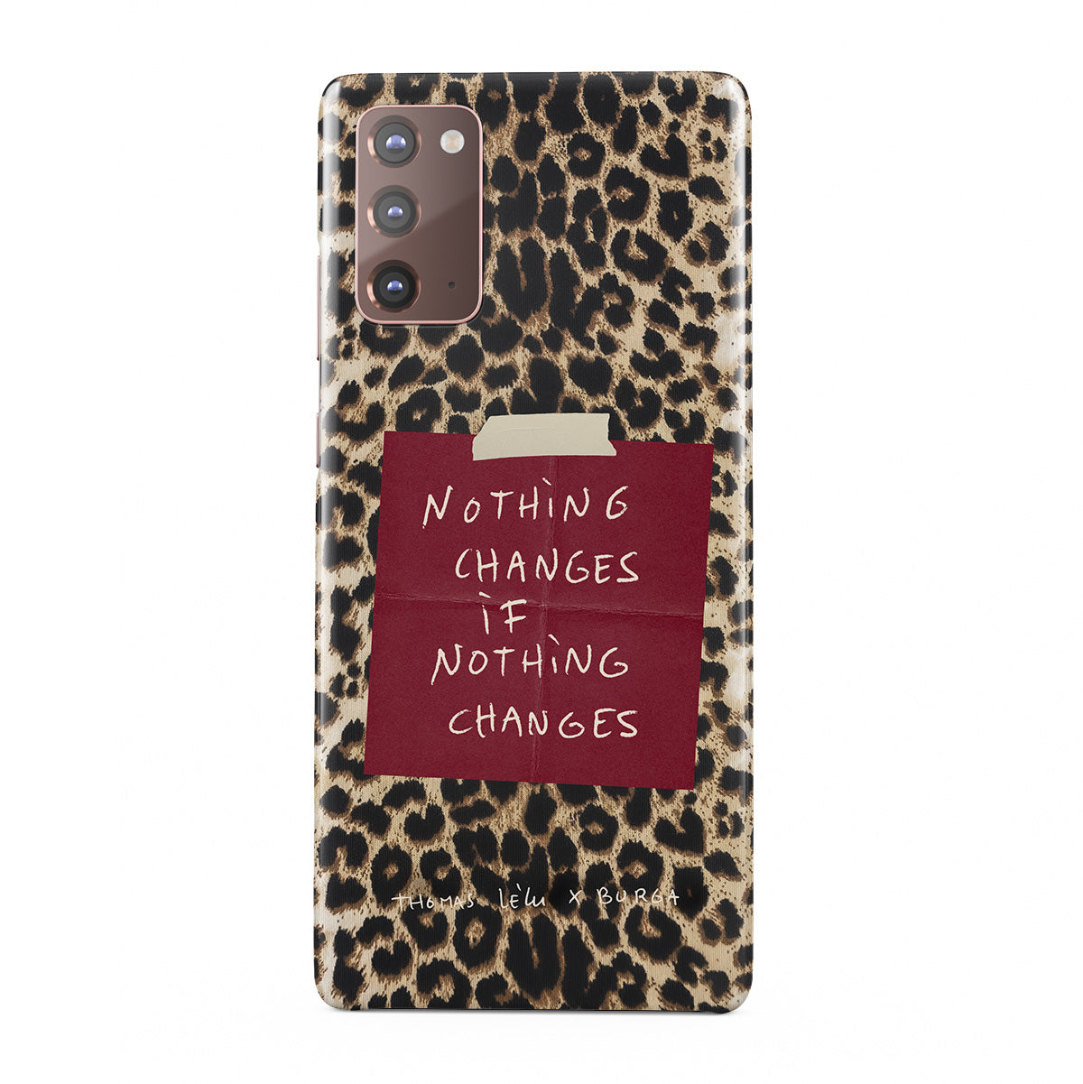 Questo design include: testo in corsivo, citazione, post-it rosso, stampa animalier