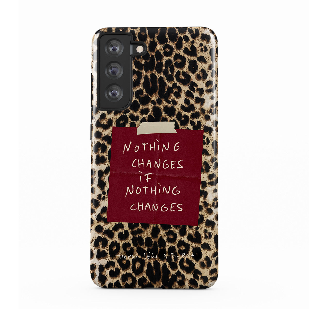 Questo design include: testo in corsivo, citazione, post-it rosso, stampa animalier