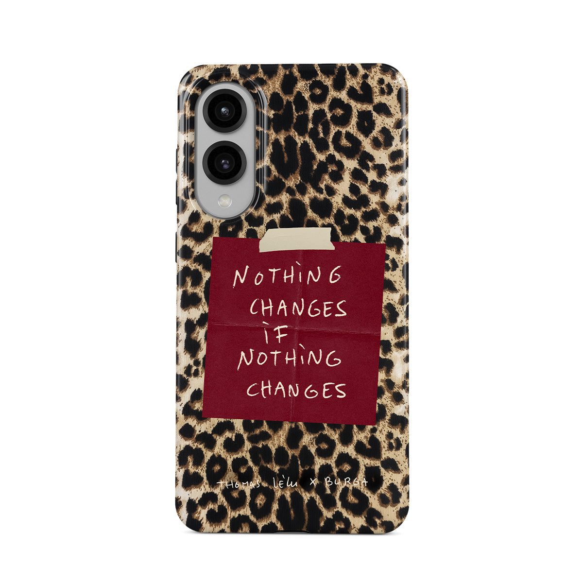 Questo design include: testo in corsivo, citazione, post-it rosso, stampa animalier