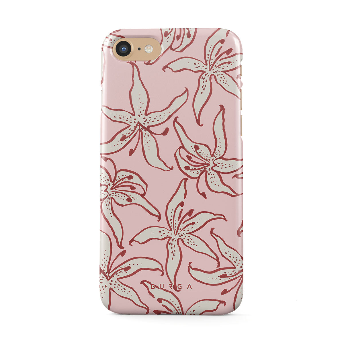 Questo design include: gigli bianchi, sfondo rosa.