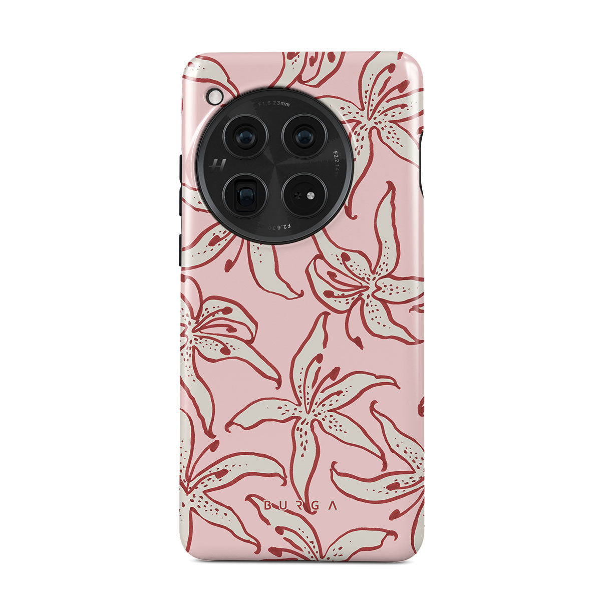 Questo design include: gigli bianchi, sfondo rosa.
