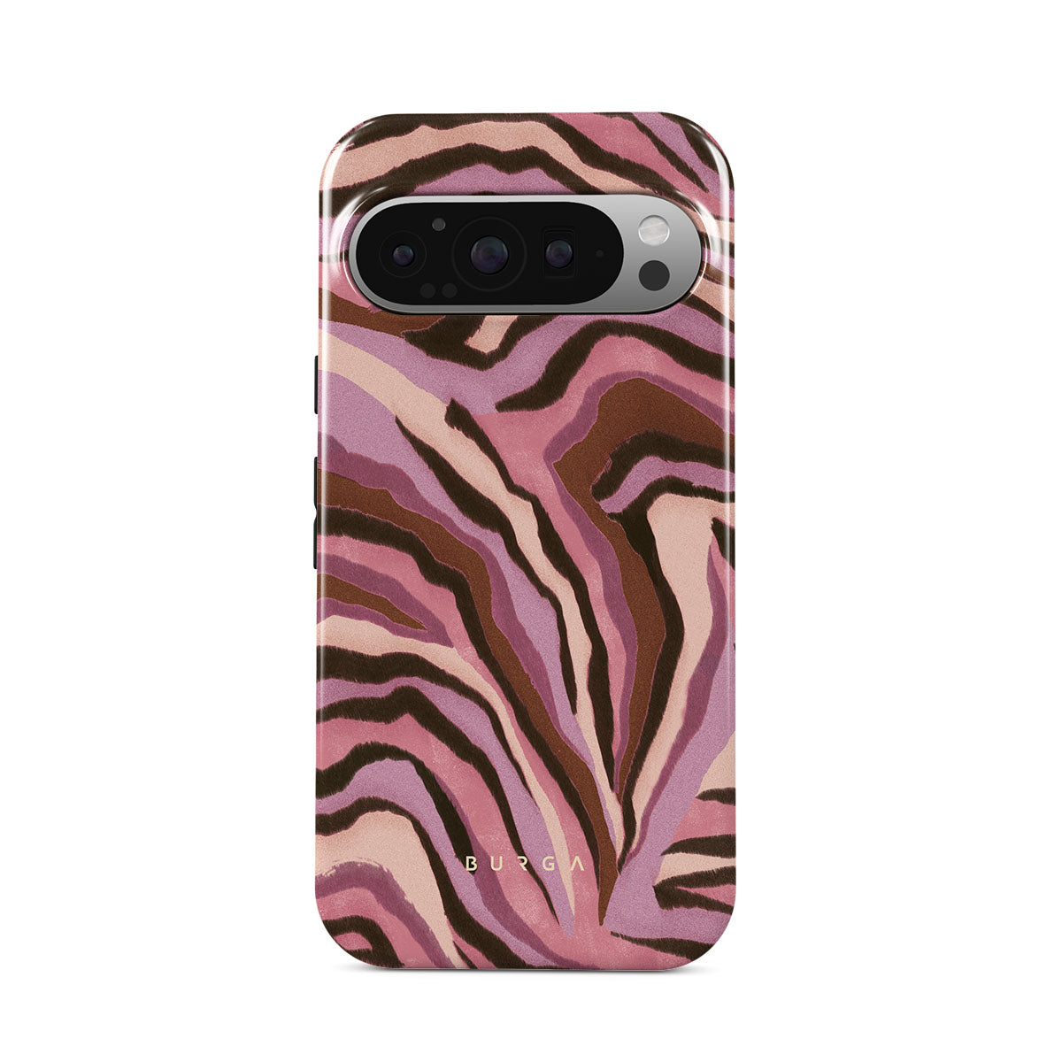 Questo design include: strisce di zebra, rosa e marrone, stampa animale.