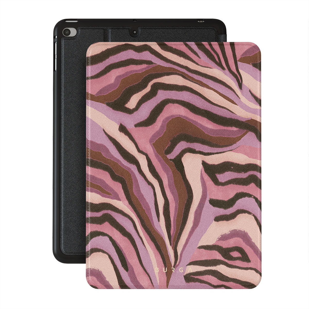 Questo design include: strisce di zebra, rosa e marrone, stampa animale.