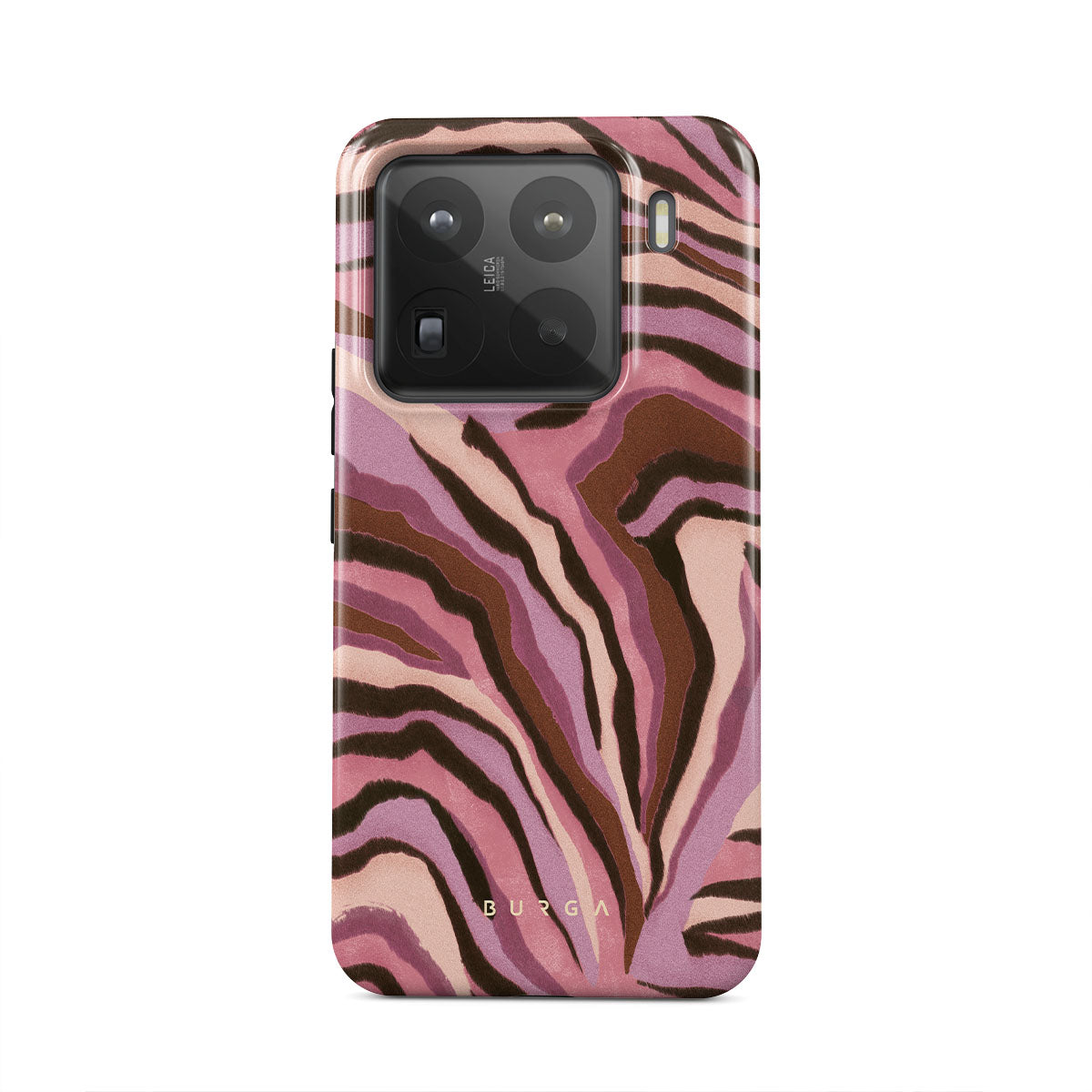 Questo design include: strisce di zebra, rosa e marrone, stampa animale.