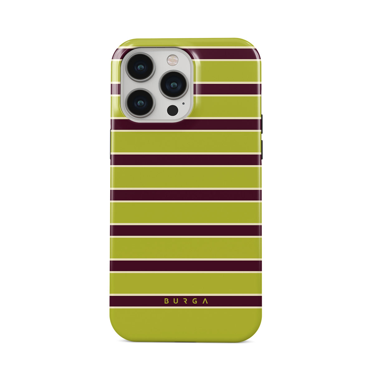 Questo design include: spesse righe orizzontali in verde lime e bordeaux.