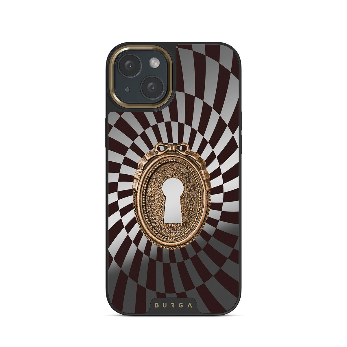 Questo design include: illusione ottica, buco della serratura, cornice vintage, specchio