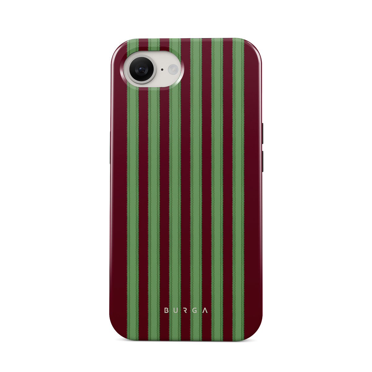 Questo design include: strisce rosse e verdi, strisce verticali, motivo bastone di zucchero, colori classici di Natale, strisce larghe, design bastone di menta, strisce natalizie tradizionali