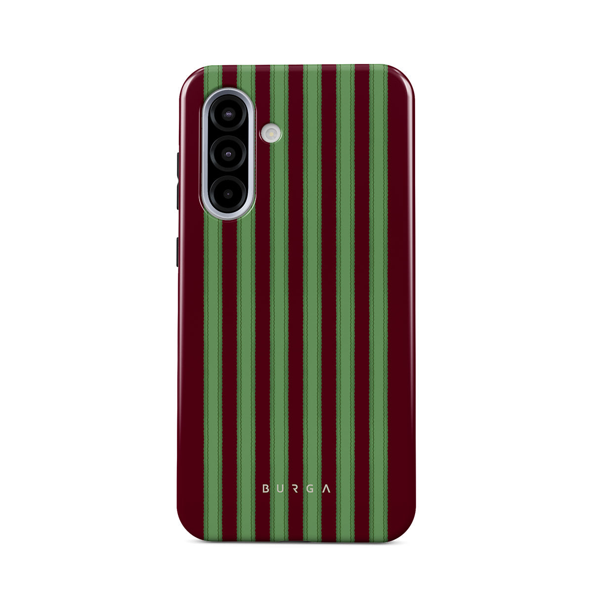 Questo design include: strisce rosse e verdi, strisce verticali, motivo bastone di zucchero, colori classici di Natale, strisce larghe, design bastone di menta, strisce natalizie tradizionali