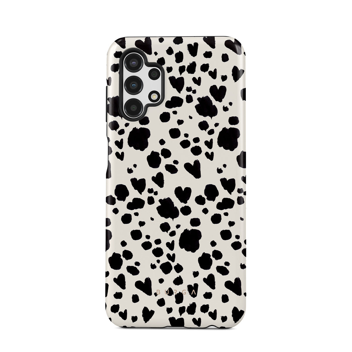 Questo design include: un motivo a macchie da dalmata in bianco e nero.