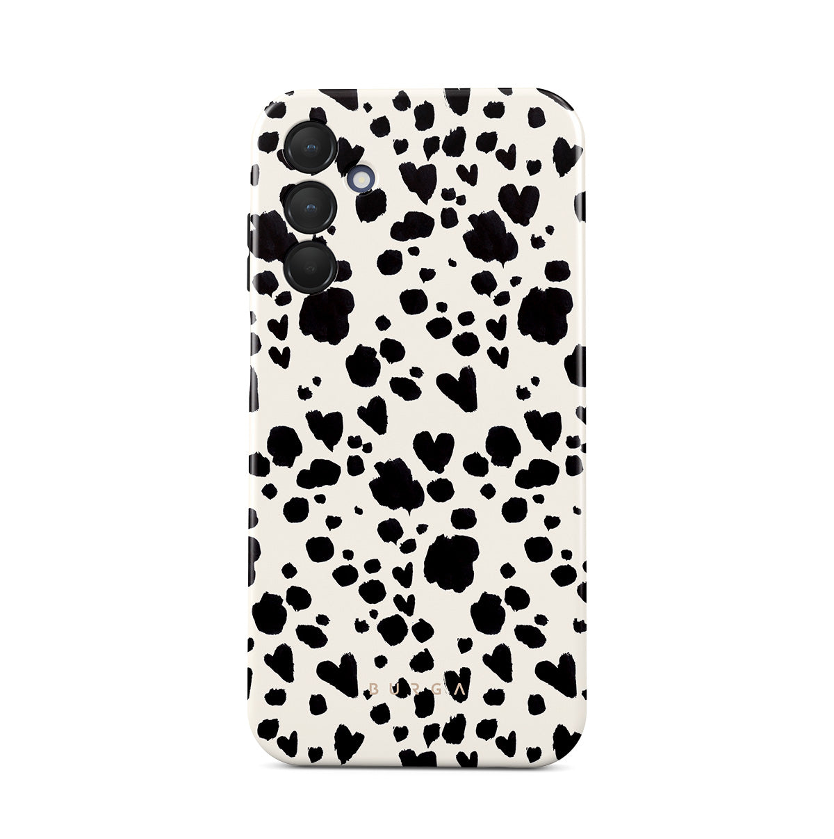 Questo design include: un motivo a macchie da dalmata in bianco e nero.