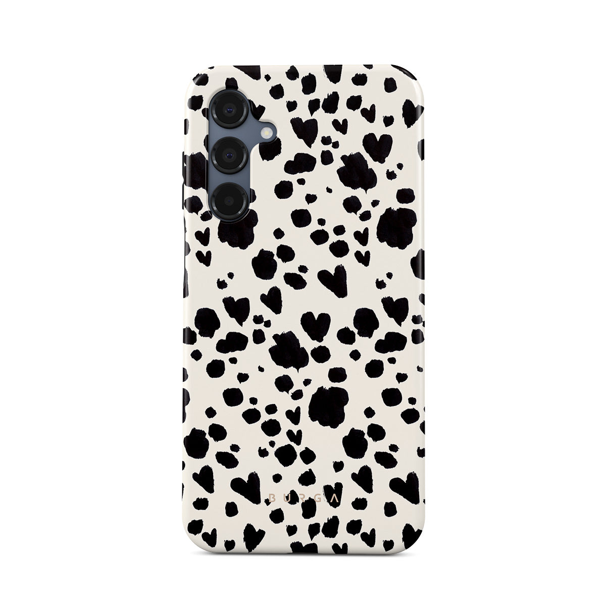 Questo design include: un motivo a macchie da dalmata in bianco e nero.