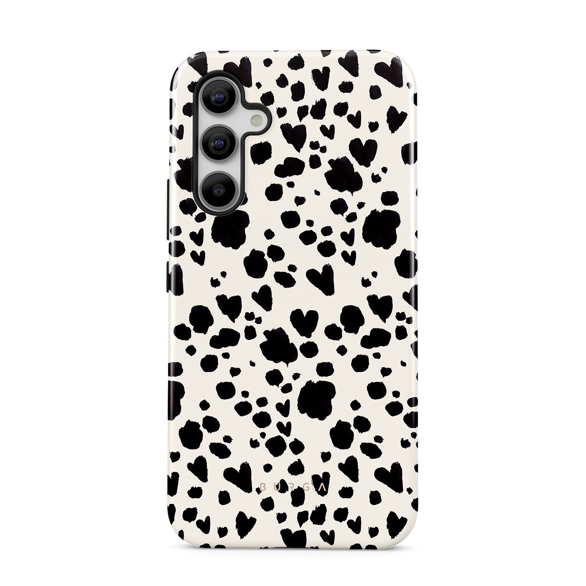 Questo design include: un motivo a macchie da dalmata in bianco e nero.