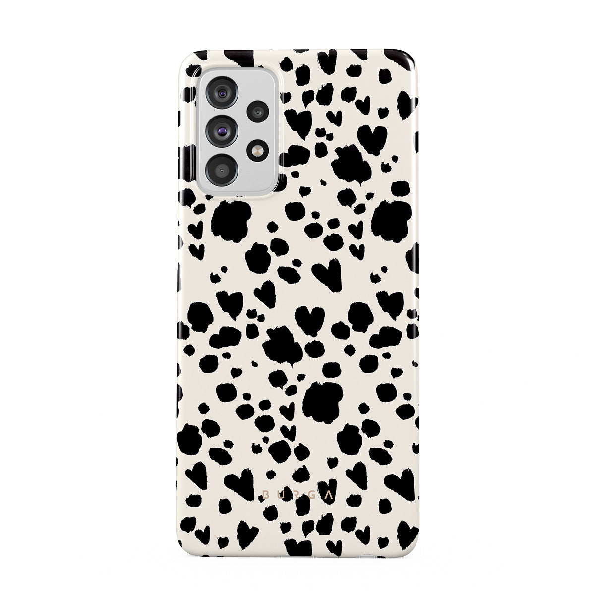 Questo design include: un motivo a macchie da dalmata in bianco e nero.