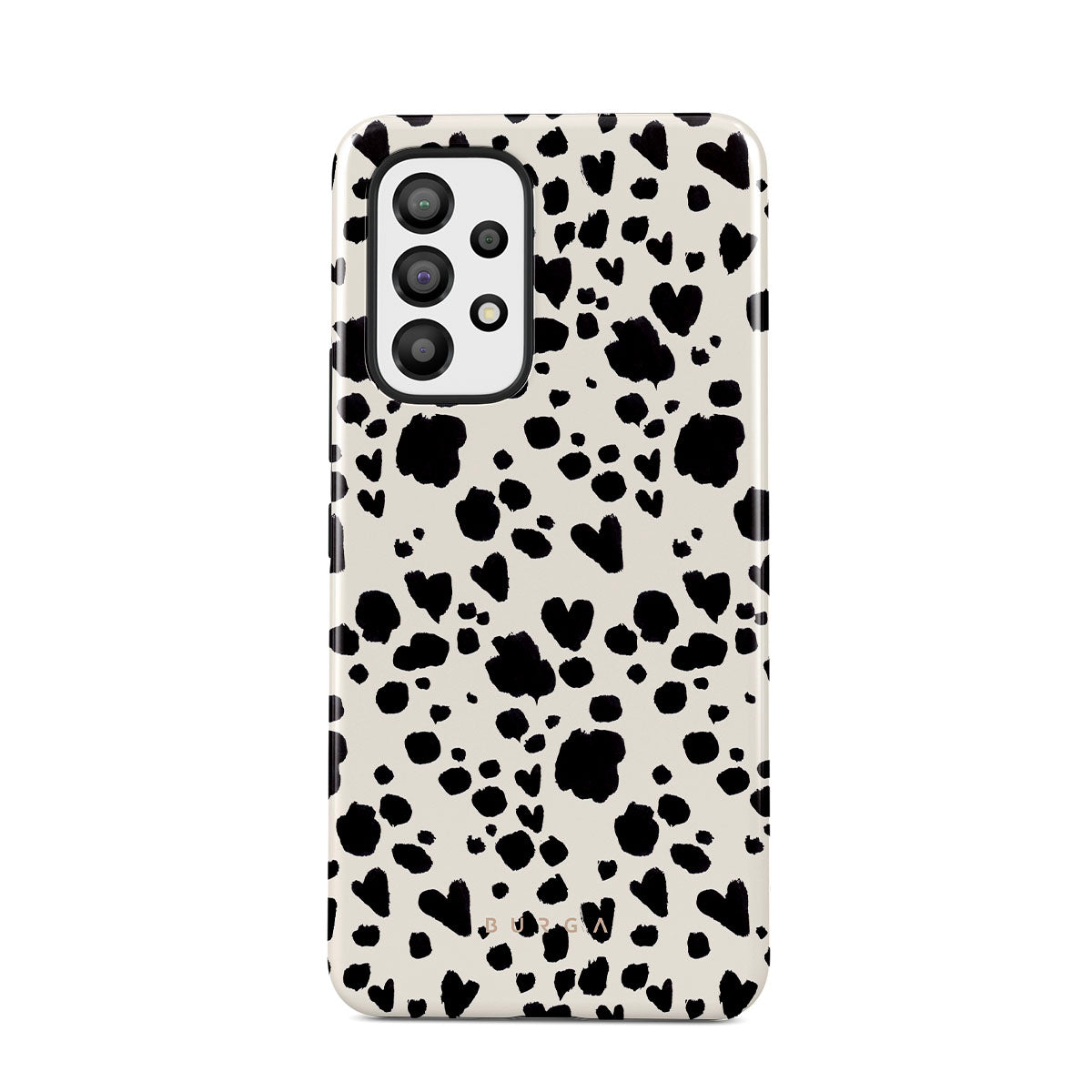 Questo design include: un motivo a macchie da dalmata in bianco e nero.