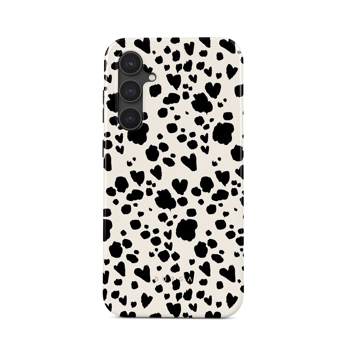 Questo design include: un motivo a macchie da dalmata in bianco e nero.