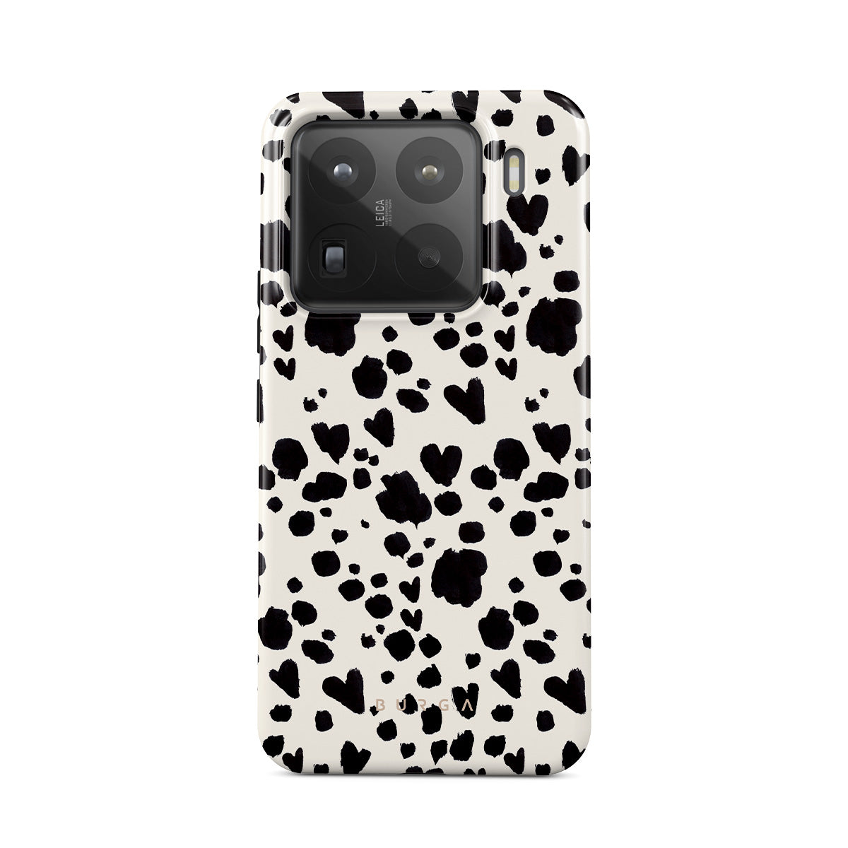 Questo design include: un motivo a macchie da dalmata in bianco e nero.