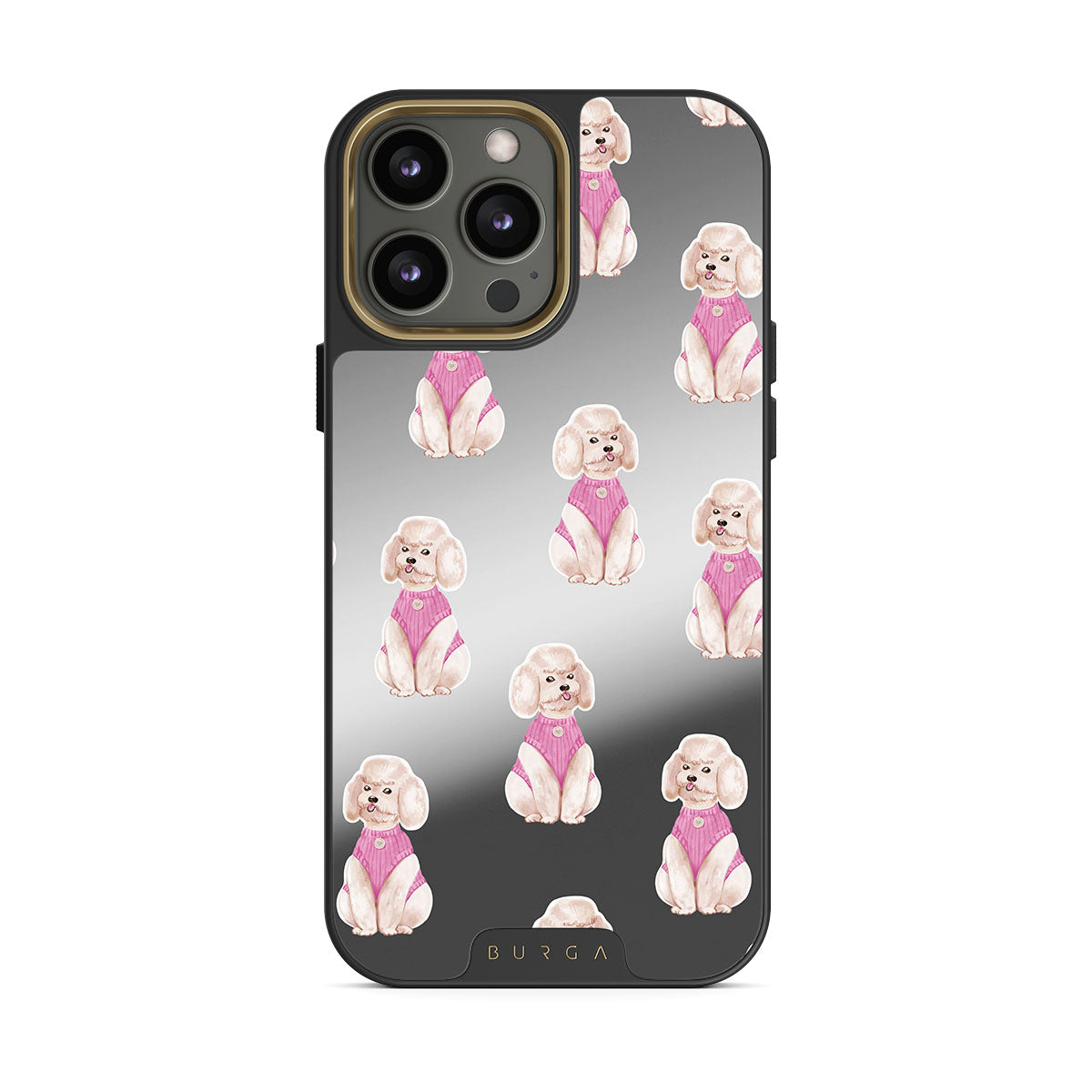 Questo design include: barboncini, cani, animali domestici, dettagli rosa, specchio
