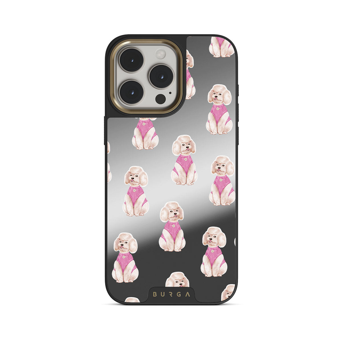 Questo design include: barboncini, cani, animali domestici, dettagli rosa, specchio
