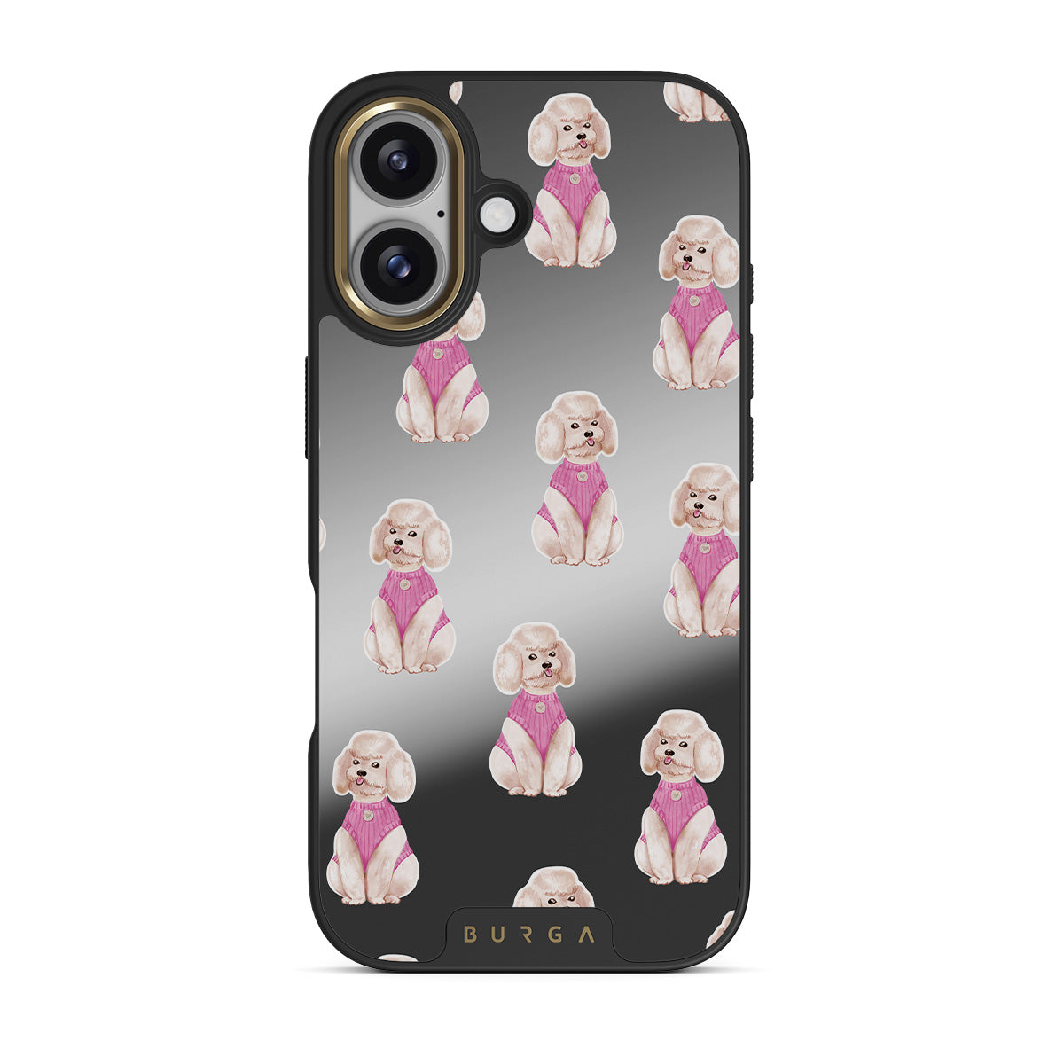 Questo design include: barboncini, cani, animali domestici, dettagli rosa, specchio