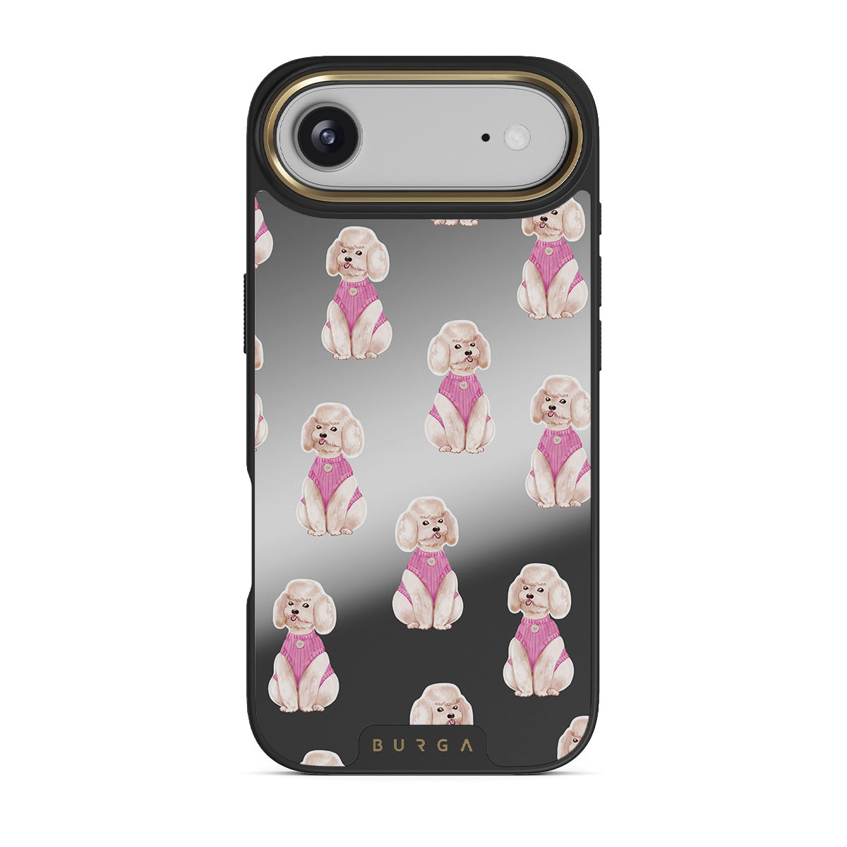 Questo design include: barboncini, cani, animali domestici, dettagli rosa, specchio