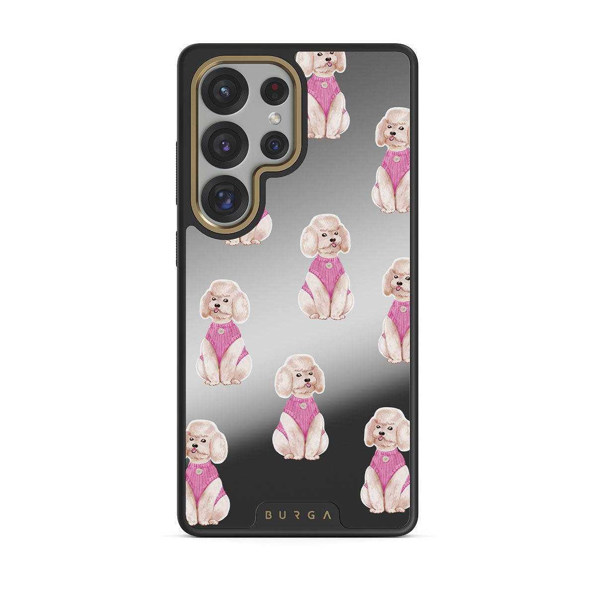 Questo design include: barboncini, cani, animali domestici, dettagli rosa, specchio