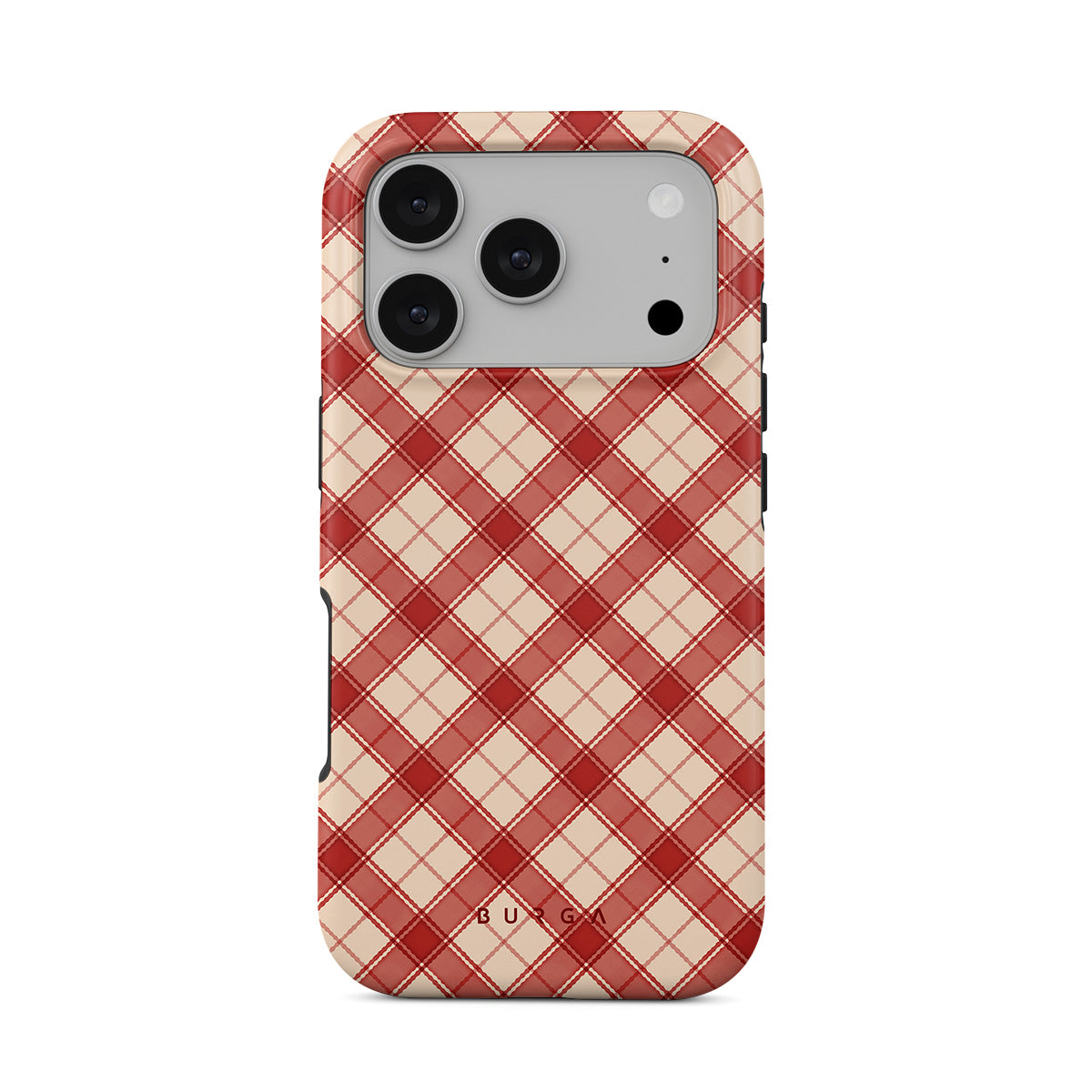 Questo design include: tartan rosso e beige, motivo tartan diagonale, tartan classico, stile buffalo check, motivo tradizionale di tartan natalizio