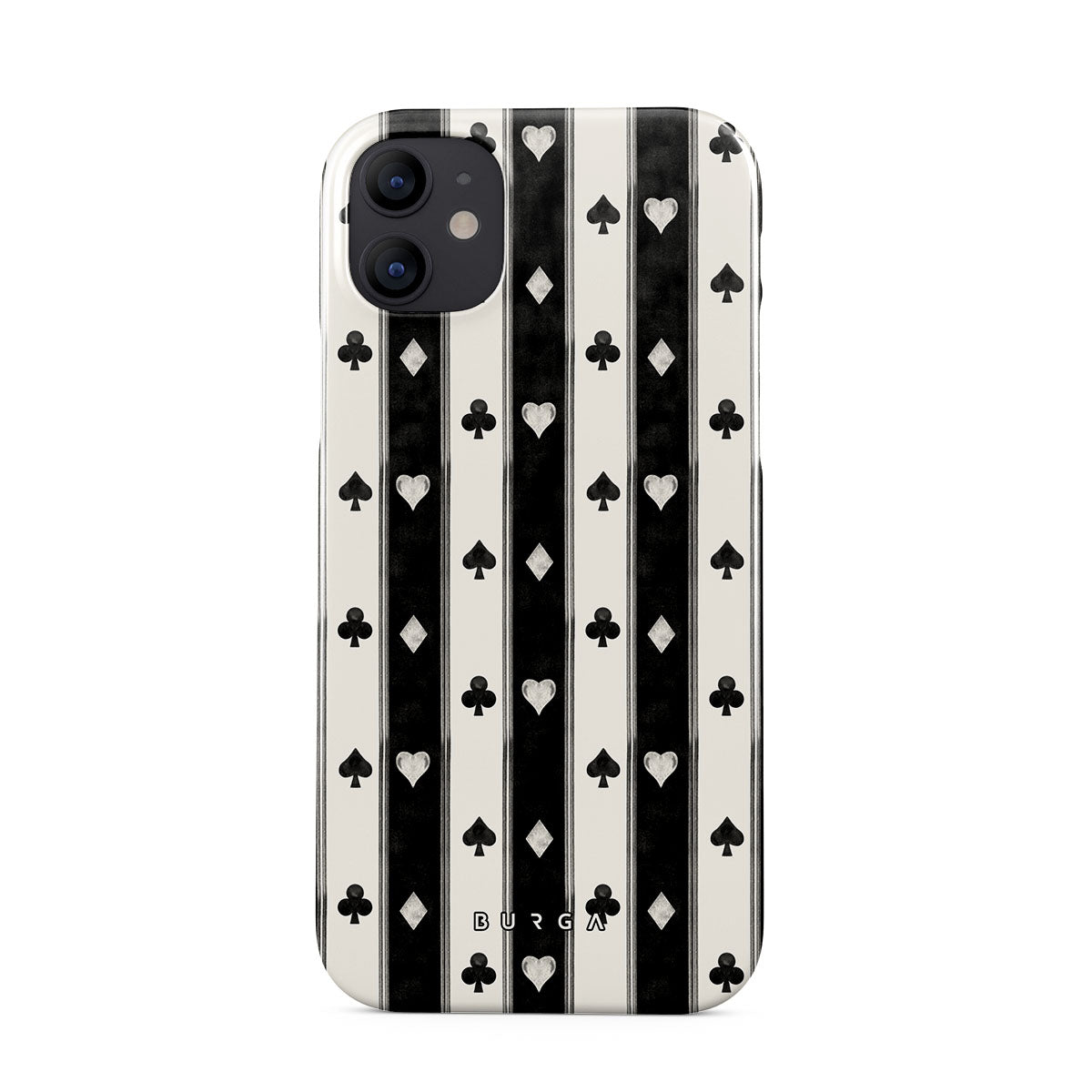 Questo design include: strisce nere e bianche, cuori, semi delle carte, stile vintage